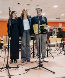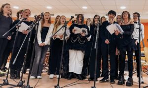 Im Anschluss überzeugten Lenia Lange (Gesang) und Paul Döring (Gesang und Gitarre), begleitet von Friederike Spelsberg am Flügel, mit Songs von Coldplay und Ed Sheeran. Mit ihrem Können und ihrer spürbaren Leidenschaft für die Musik faszinierten sie das Publikum und bereiteten stimmungsvoll auf den folgenden Chorbeitrag vor.